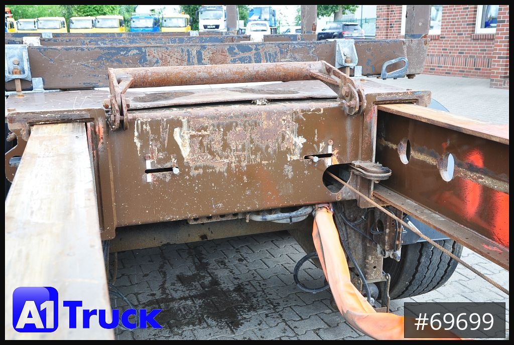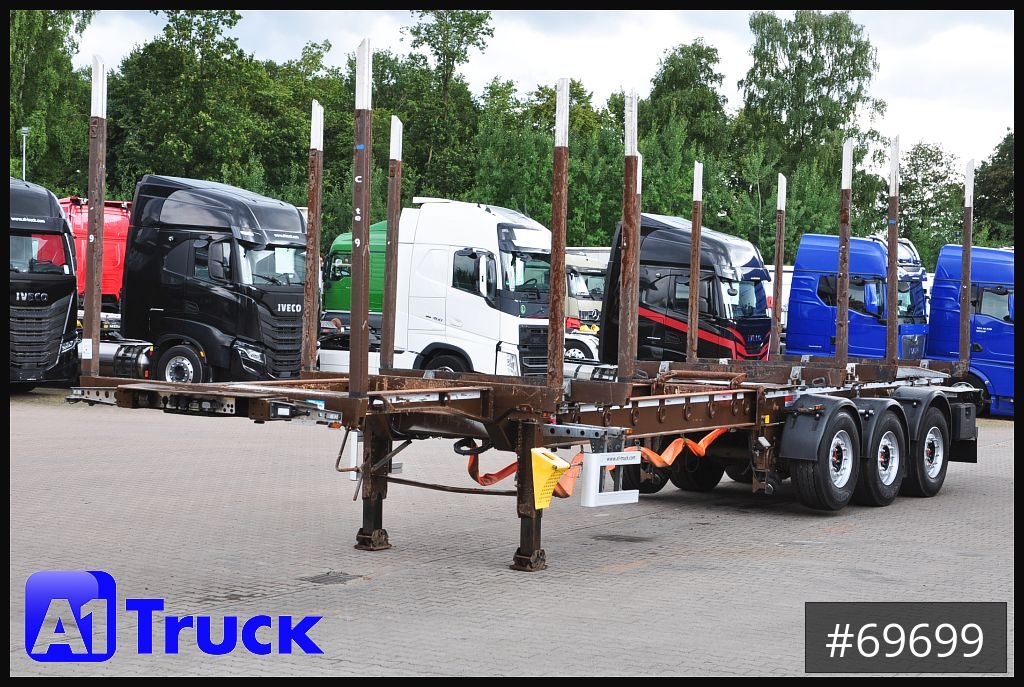 Laufleistung: 304338 km, teleskopierba 3500mm, Auszug von 9450mm - 12950mm, 6x Stahl-Schemelkörper mit Ecco-Steel Vierkantrungen, Holztransport 2x6m 2x5m 3x4m 3x3 7m 3x3m Langholz bis 14m, 3te Achse nachlaufgelenkt mit Rückfahrsperre