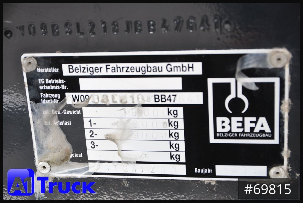 Herstelle BEFA Belziger Fahrzeugbau, Wabco Smartboard, 50 Zugöse, oben gekuppelt, Kurzholzanhänger 4 Schemel mit Exte Runge, 3x Schutzshemel, Stahl Rahmenabdeckung, Wabco Smartboard 171 tkm