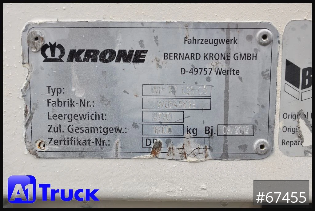 Krone Wechselbrücke 7,82, 27mm Boden Siebdruck bis zu 5460 Staplerachslast, Zurrmöglichkeit innen an der Stirwand links + rechts, verschiebare Mittelrungen, KTL Beschichtet