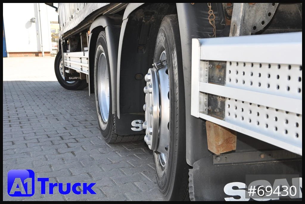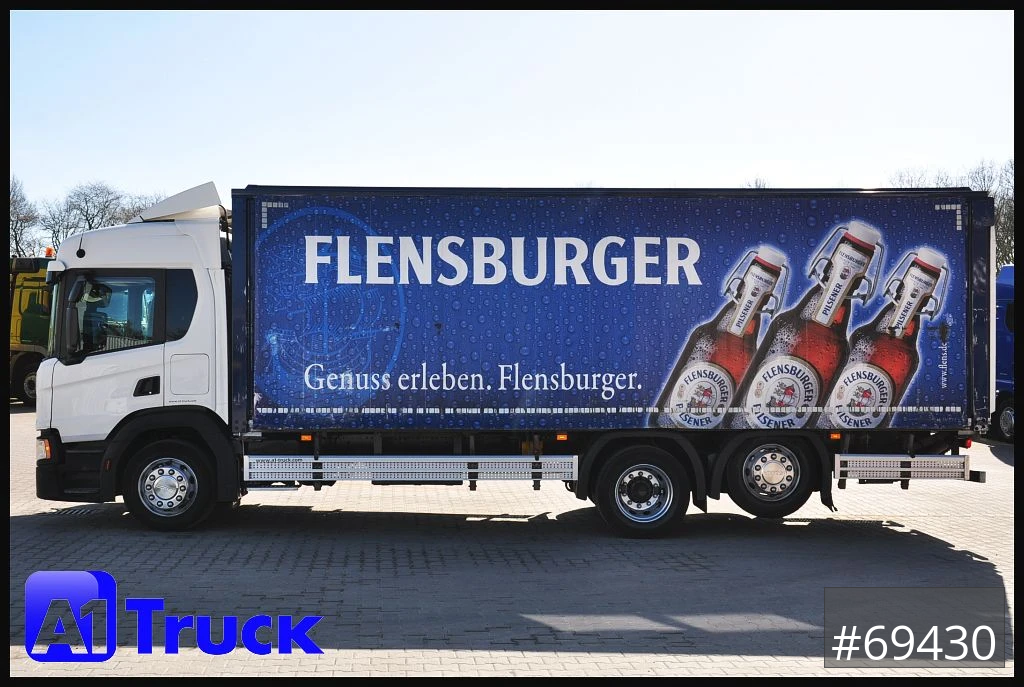 Scania P320 Getränkwagen 6x2, Ladebordwand: Dhollandia DHLM 30 Tragkraft 2500kg, Böse Getränkeaufbau, Heck Kamera, Dachluke